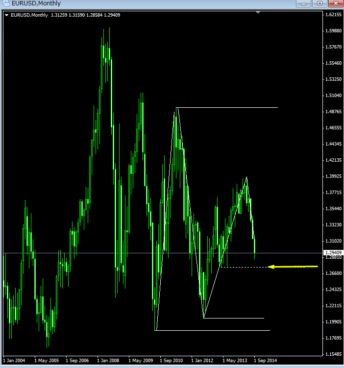 ■EUR/USD・・・矢印付近を目指して下落中↓