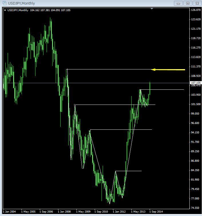 動きがないので、主要通貨ペアにおける月足レベルでの市場参加者の目標値を整理したいと思います。(下図)