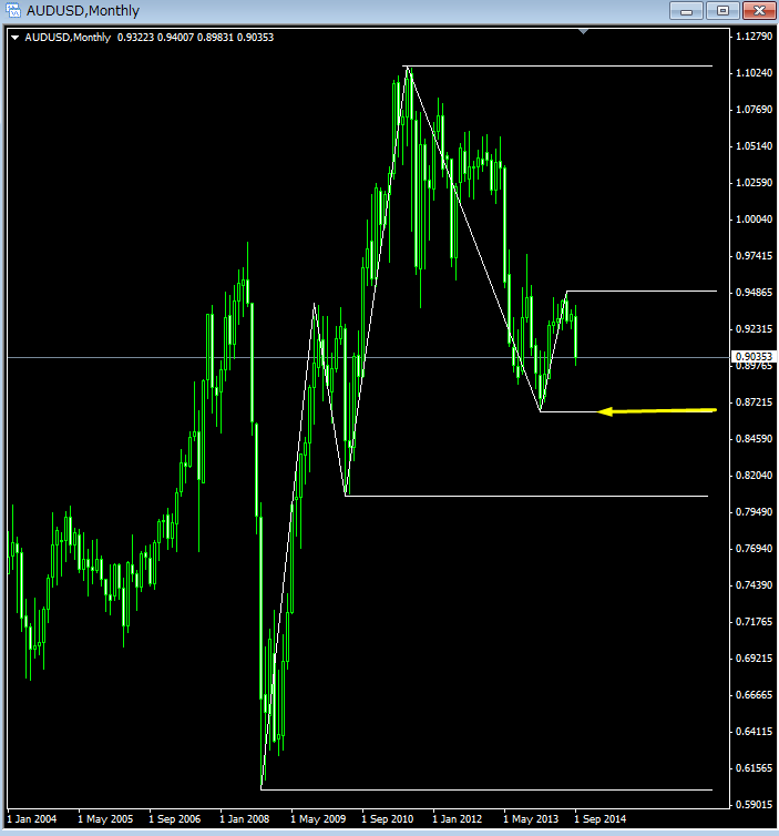 ■AUD/USD・・・矢印付近を目指して下落中↓
