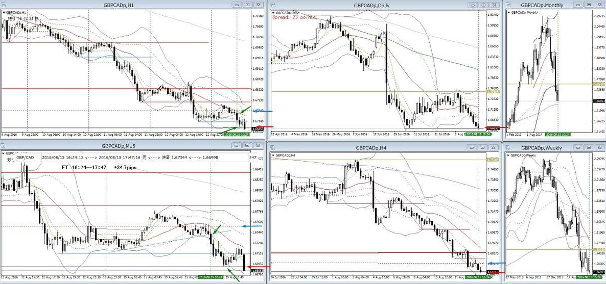 上記のような、上位足レベルである程度精緻なシナリオ(環境分析)と通貨ペアー選択ができるようになると、後はトレード執行時間足(私の場合は15分足)でどう波に乗るかだけが問題になってくるので、トレードレベルは相当上がります。