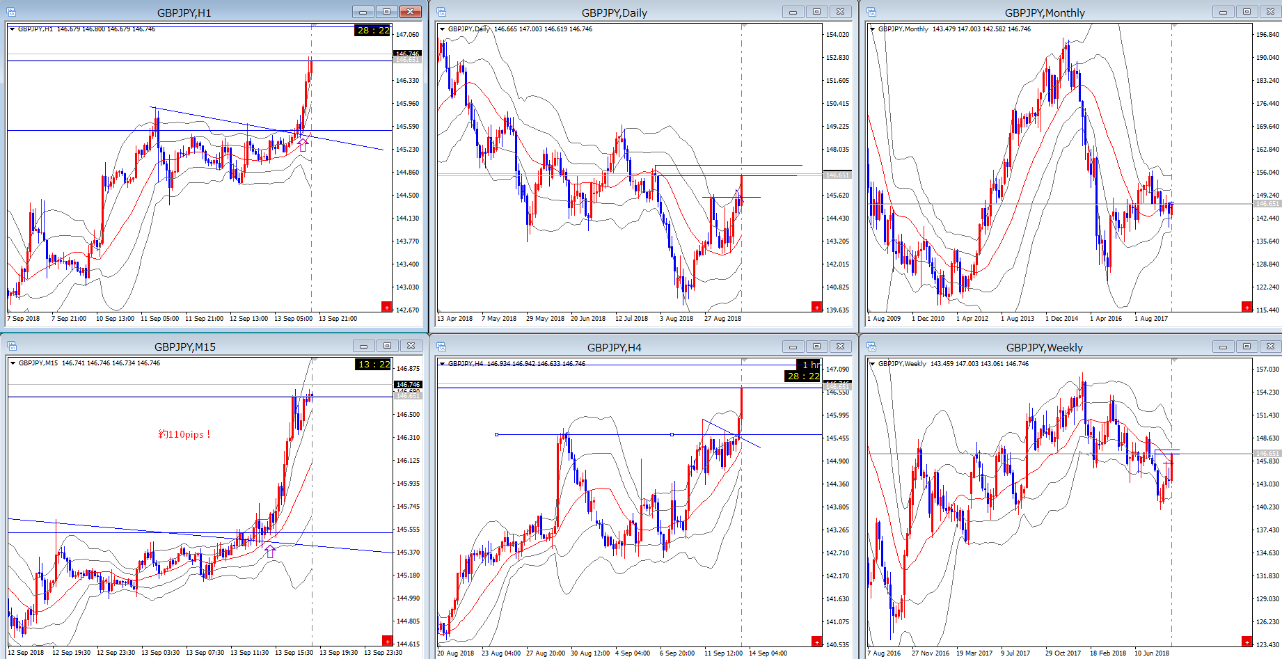 例えば、下図、GBP/JPYなどは綺麗なトレードポイントを見せていました。