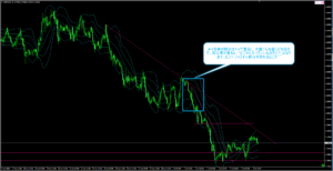 [1]のシナリオの解説に、「エントリーポイントは初心者が見たら「えっ、ここでするの!」という驚きの所の可能性が高いです。」と書いたのですが、皆様のトレード向上のために少し深堀します。