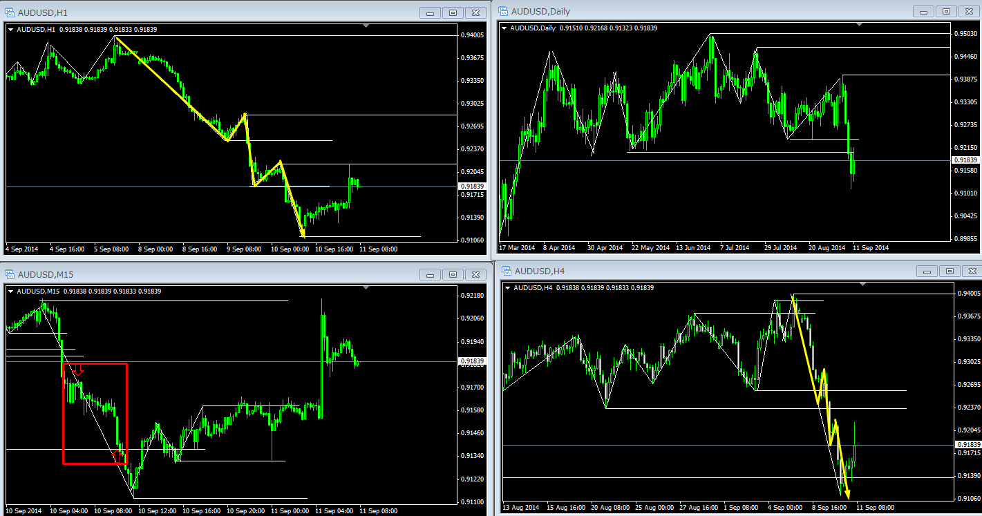 1&4時間足で綺麗な下降ダウを形成していたので、戻し売りエントリーです。