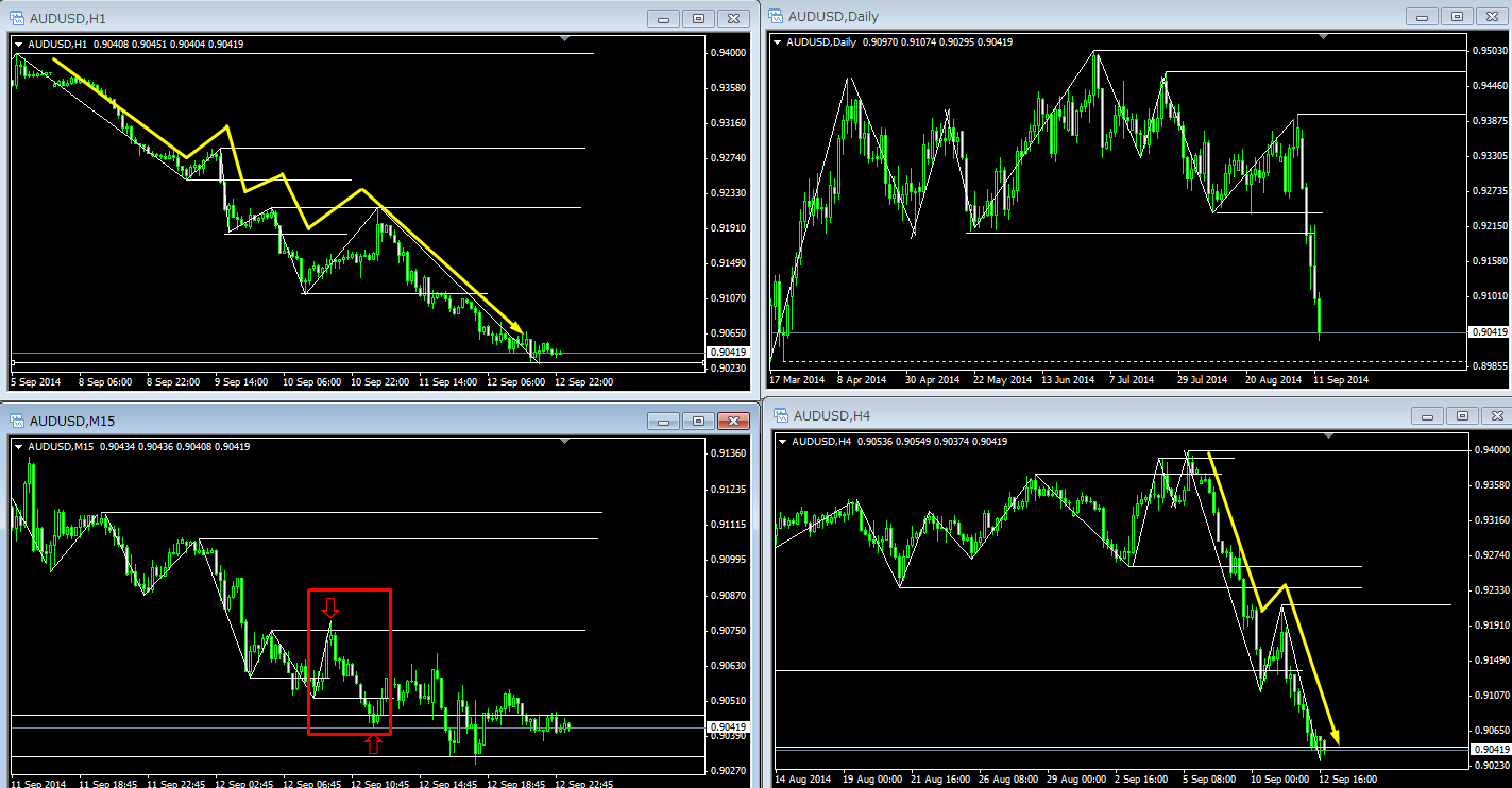 ところで、トレンドフォローで勝ち続けるには、綺麗なダウを形成している通貨を選ぶのが鉄則ですが、結構それをしていない人が多いような気がします。