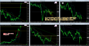 以上のように、最低でも日足から流れを読み、波の普遍性を読み解きながら、波を切り取る事が重要です。