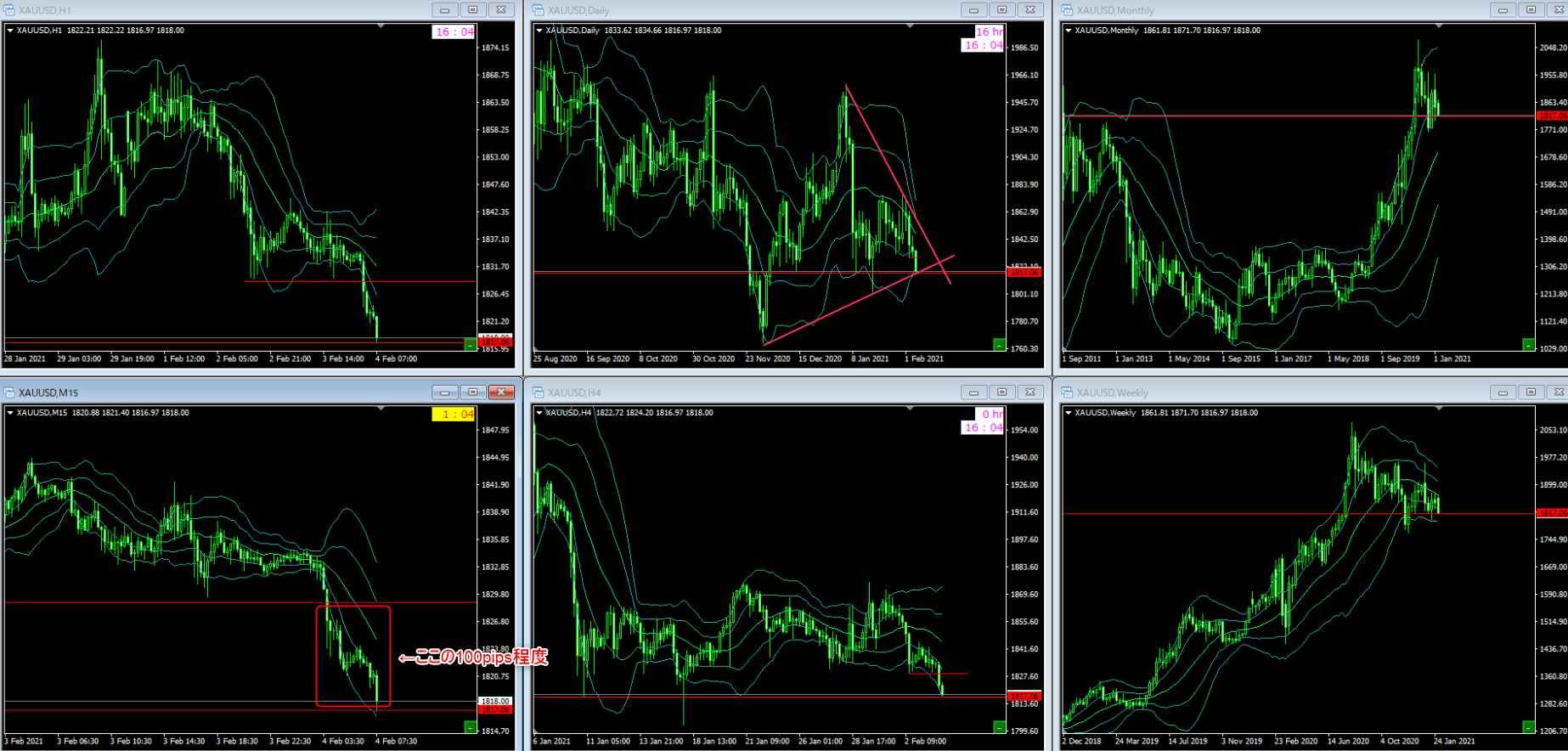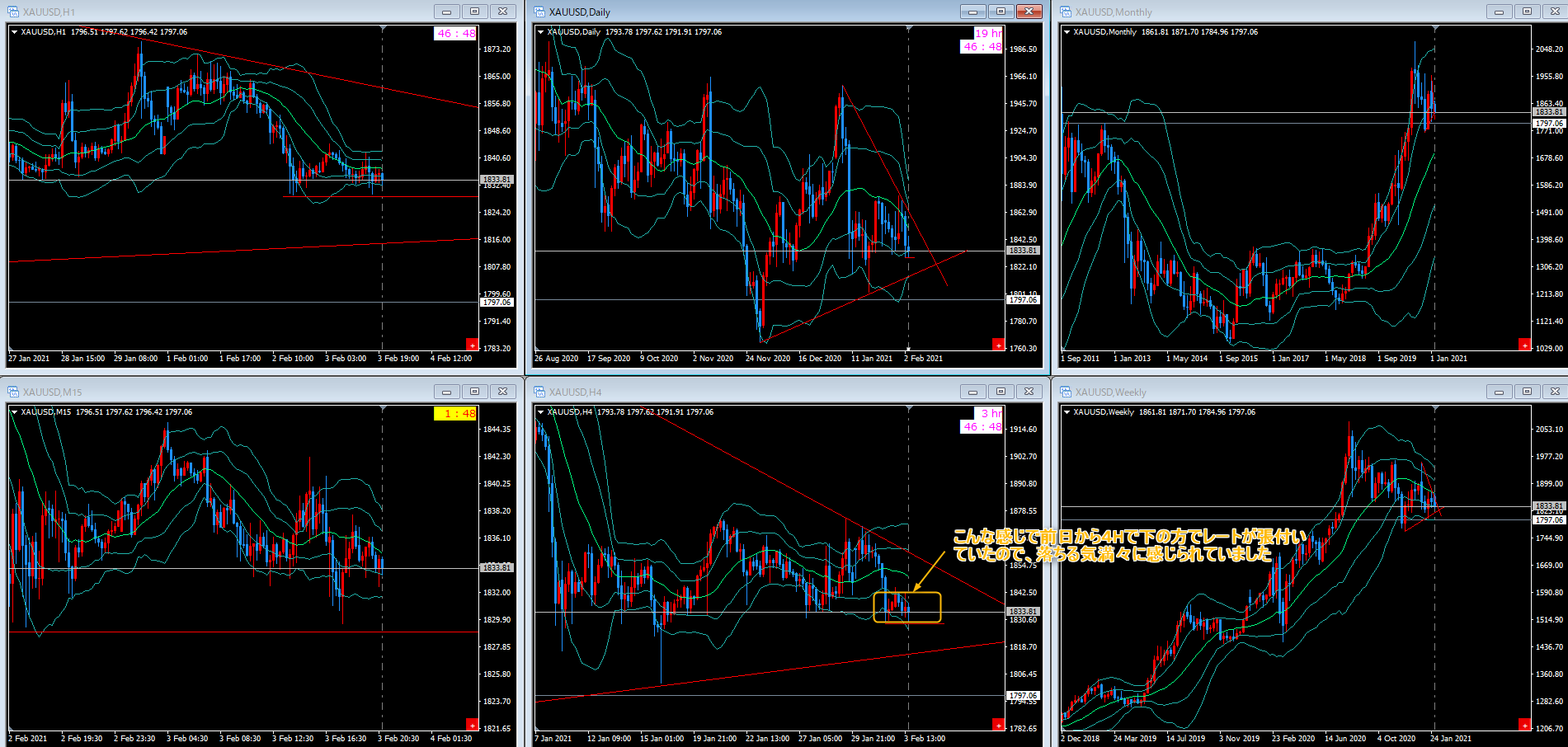 ただ、昨日は指標等で、ここから更に、爆下げしたのですが、事前に波の弱さを表すチャネル波が出ていたので、正直、そこからもう一波を取るのは勇気がいったのかもしれません。