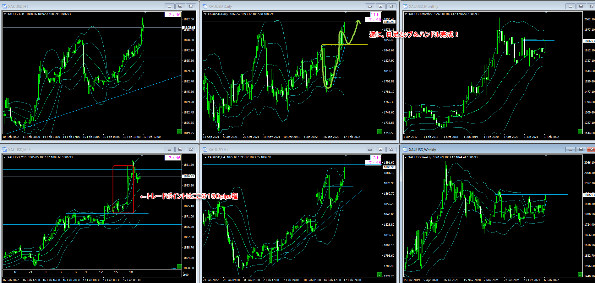 チャート的には連日取り上げている日足カップ&ハンドル完成ですね^^