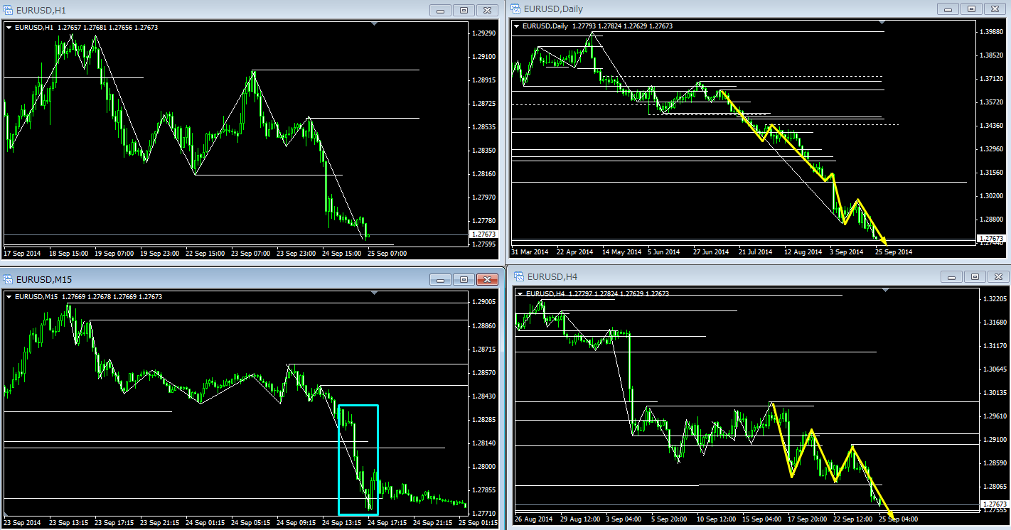 昨日は、EUR/USDが綺麗な下降ダウを作っていたにも関わらず、どういう訳か監視していませんでした。