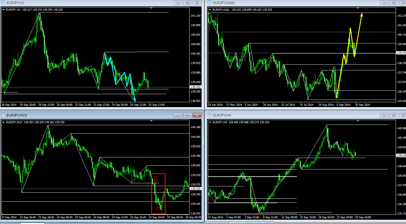 その代わりに、昨日は難易度の高いEUR/JPYで参戦してしまいました。下図です。