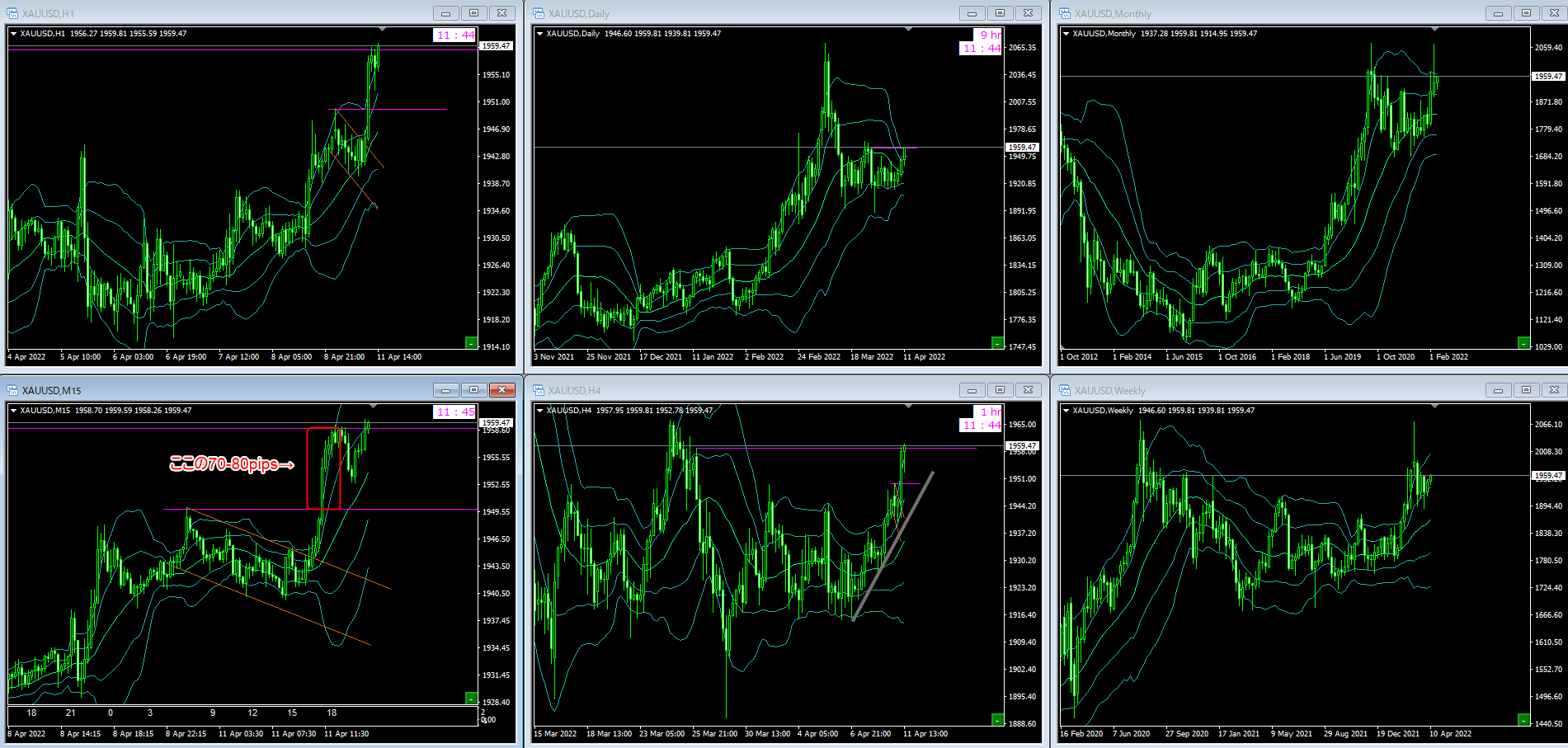 日足や週足の始値が上に張付くような感じのスタートだったので、上昇は読めていました。