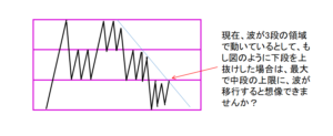 もし、波が下段の上限を上抜けたら、最大で、中段の上限まで波が上昇すると想像出来ませんか?