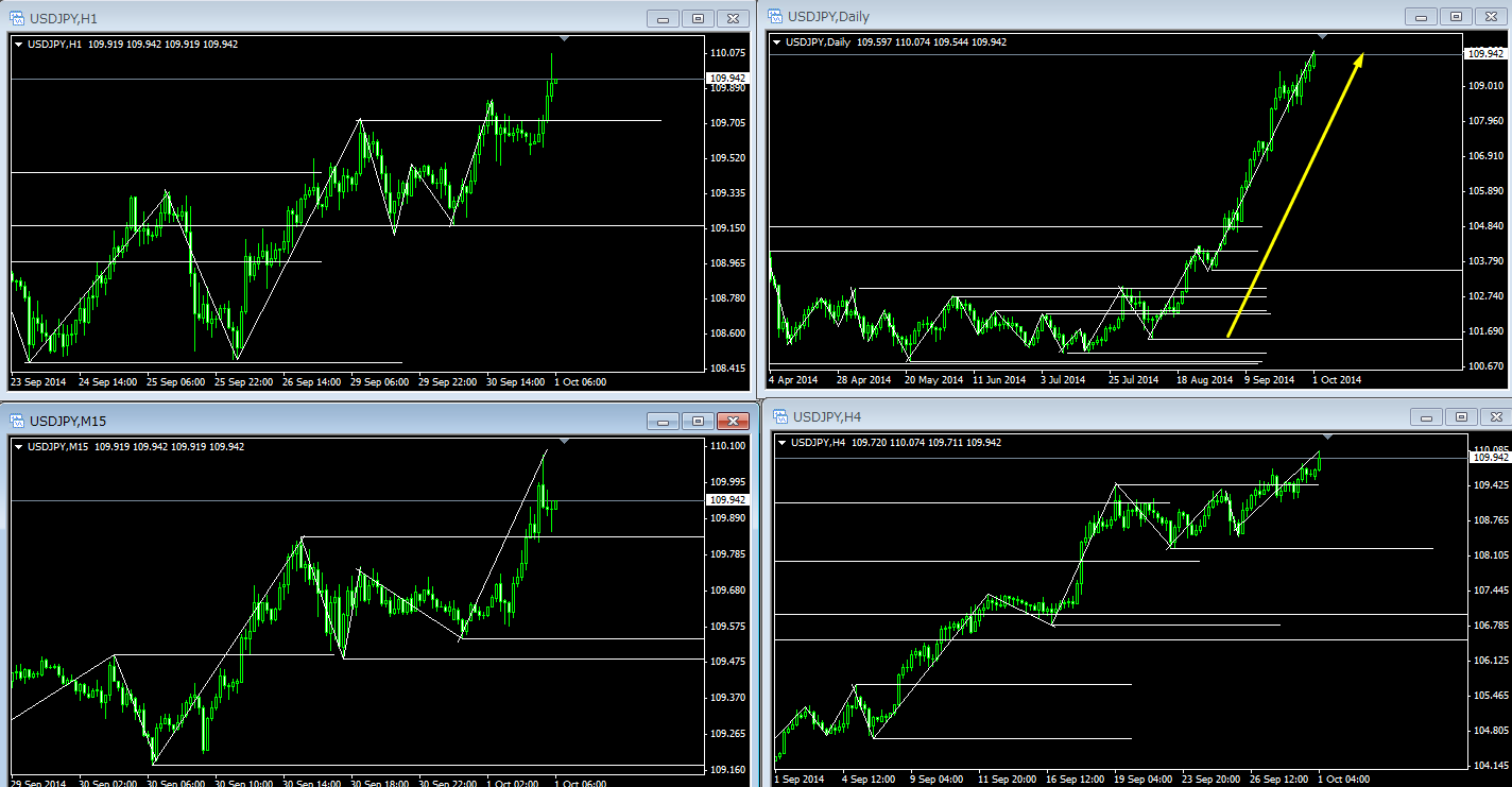 本日は、先ほど、USD/JPYが2008年8月以来の110円の大台に乗りました。