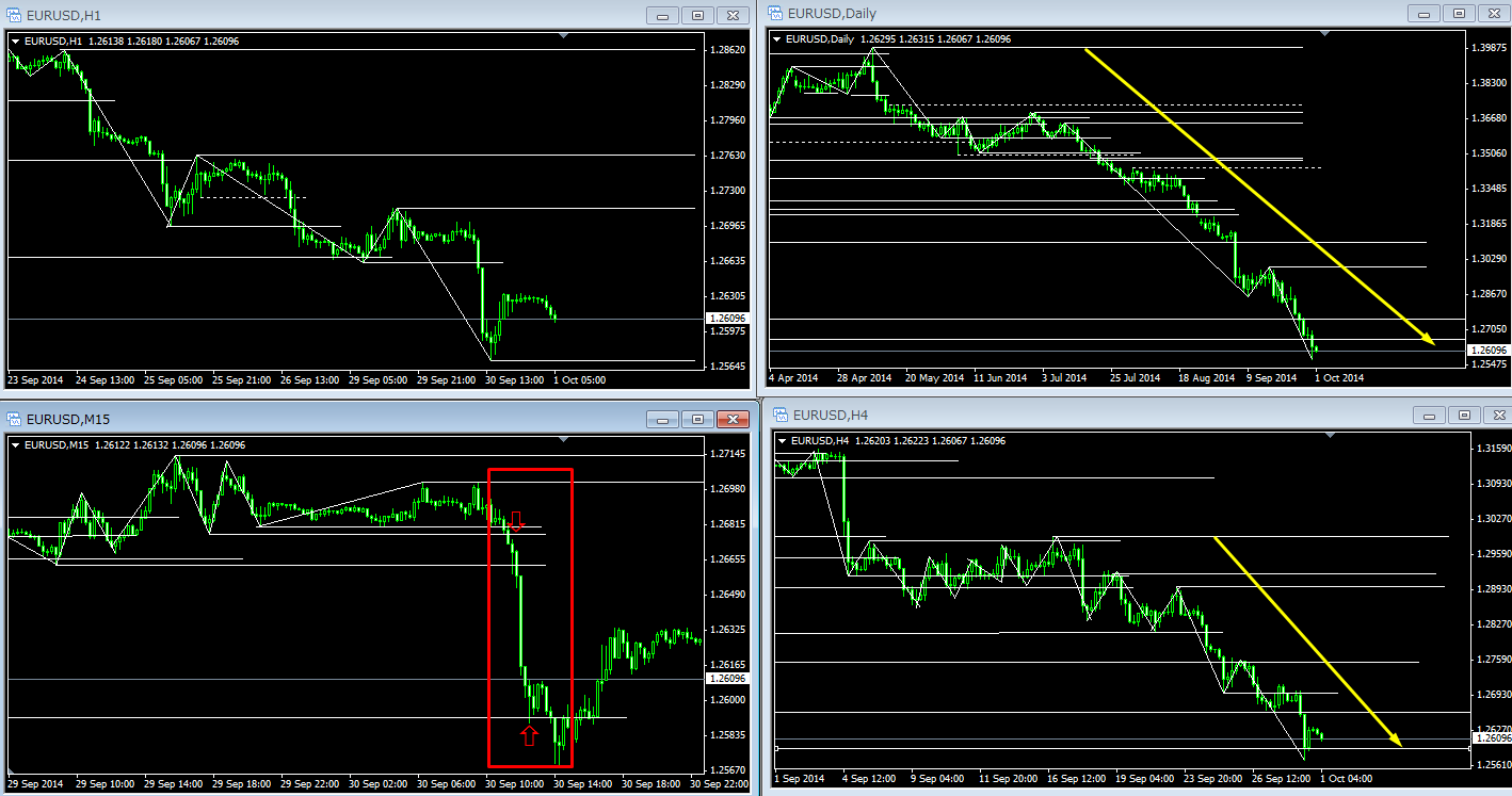 結局、上位足ダウ継続中で、その継続を更に継続させるポイントを下位足で狙って行くのが、トレンドフォロー系にとって一番摂りやすい方法です。