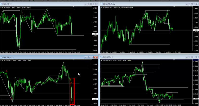 大きな足のレンジ相場の中の動きは、このような動きがよくあるので、非常に分かりやすかったです。