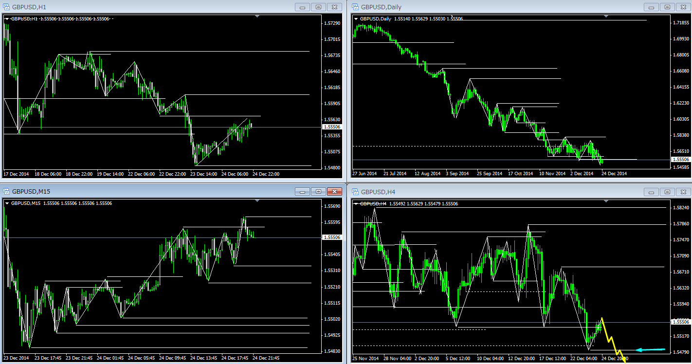 ■GBP/USD・・・EUR/USDと同じ。4時間足の最安値を抜けたら「売り」でエントリー準備。