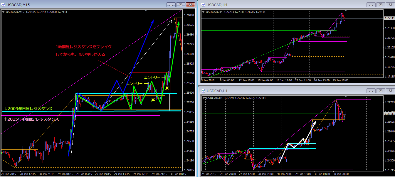 こうしたエントリーポイントでの15分足波動の違いについて、エントリー前後でどういったことを念頭において戦略を立てたらよいか