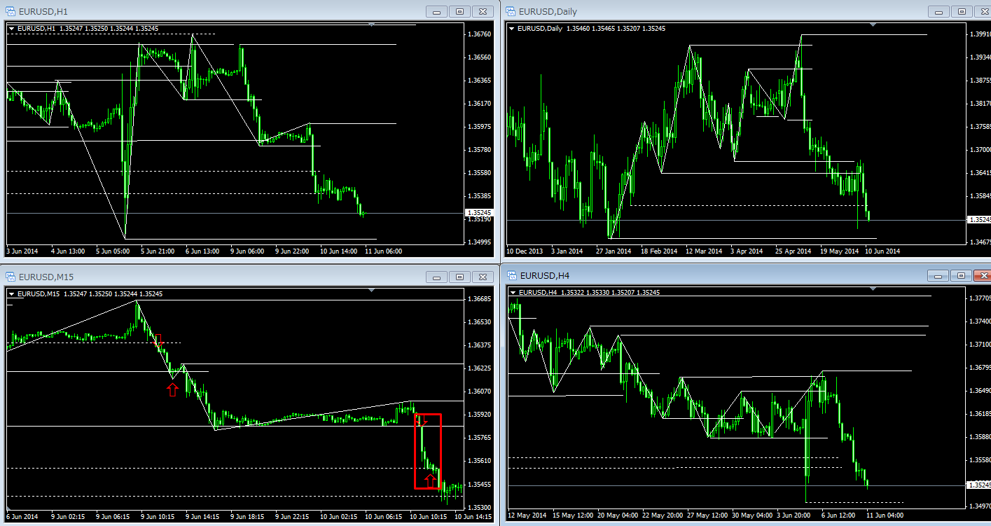 そもそも4時間足はレンジですので、方向性がない状態です。
