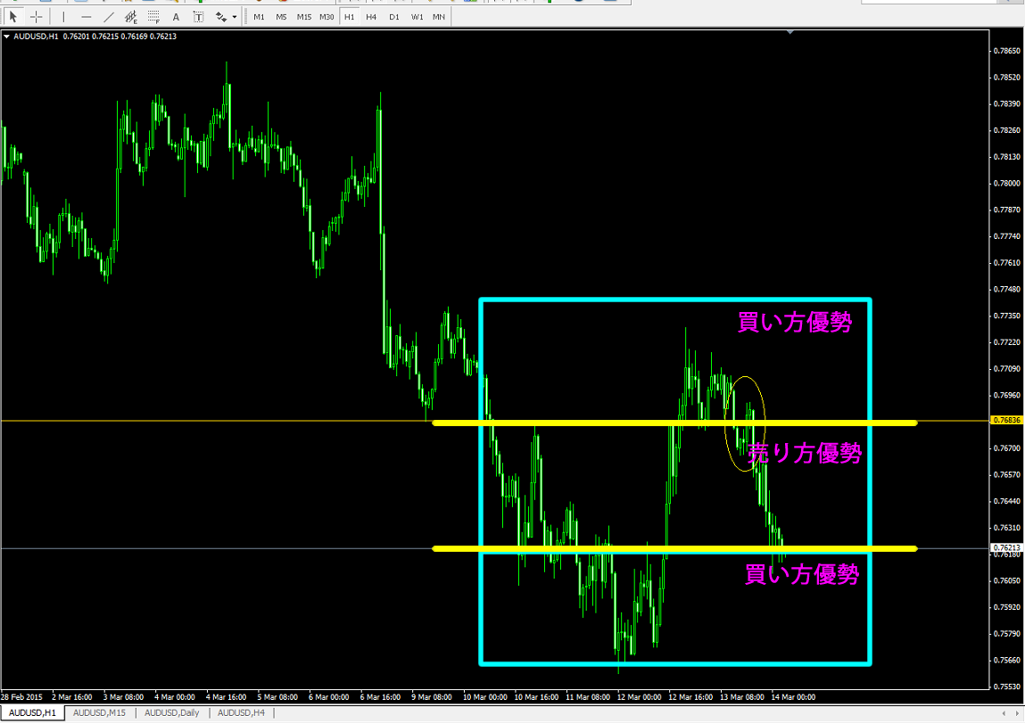 つまり、そのラインを挟んで、売り方が多いのか、買い方が多いのか、それを考えることです。