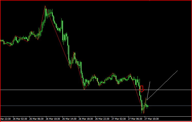 この場合、1時間足でドリルダウンすると、ピンクライン辺りの見えない抵抗線が意識されます。