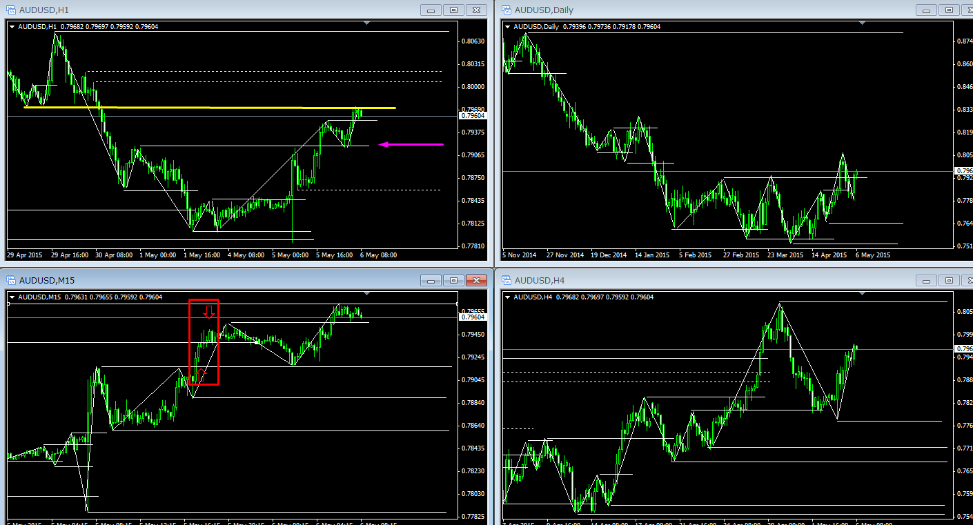 ピンクの矢印を夜の指標で抜けたので、動きが落ち着いたところで、15Mでタイミングを見ながらエントリーしたのですが、エグジットは今一でした。