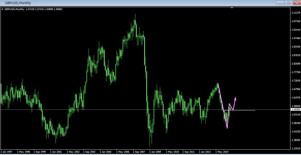 というのも、日足レベルでは、テクニカル的に下に行く環境が出ていたのですが、週足と月足レベルでは丁度押し目に差し掛かる部分だったからです。