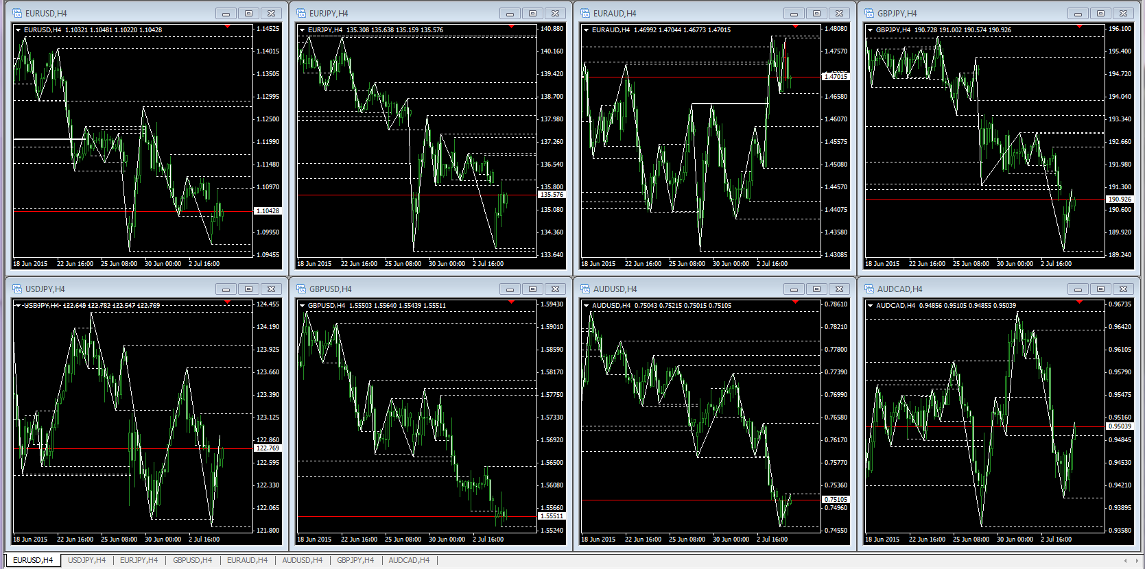 先日私のポジポジ病とも言える症状に関しまして4時間でのダウだけに集中せよというアドバイスを頂きまして、いろいろと試行錯誤の結果、今では8通貨ペアの4時間チャートだけをひとつの画面に出して4時間足の水平線を抜けるような通貨ペアだけを狙うようになり、さきほどもAUDCADで20ピップスほど頂きました。 もう少し待てば2倍とれましたが、4時間の抵抗線が近くにありましたので早めに利獲しました。
