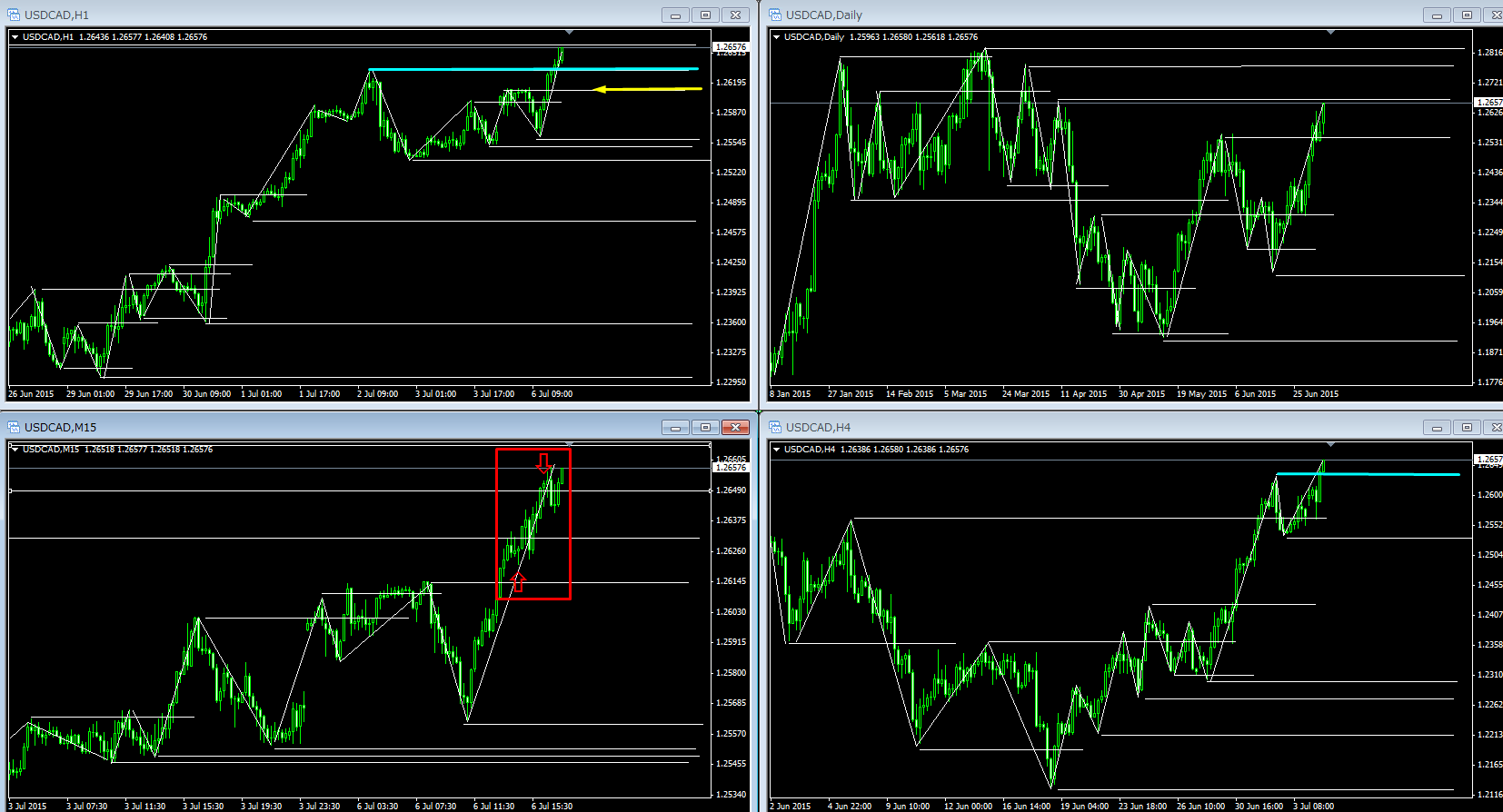それ以下の水平線は大多数の市場参加者が見ている局面が変わる抵抗線としては、弱すぎます。