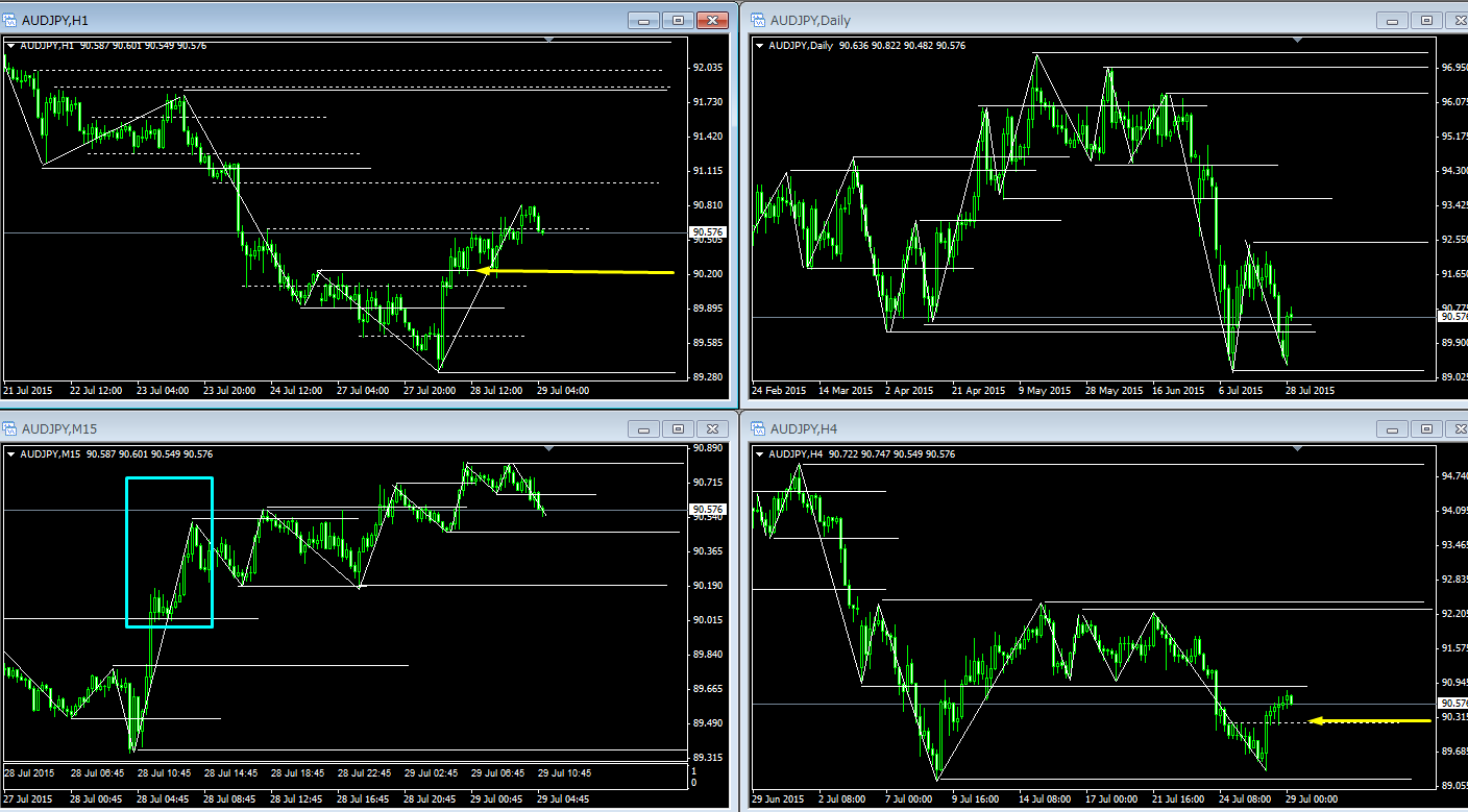 昨日は1日中外出のためノートレードでしたが、チャートを見返すと、AUD/JPYが取れたなと思いました。