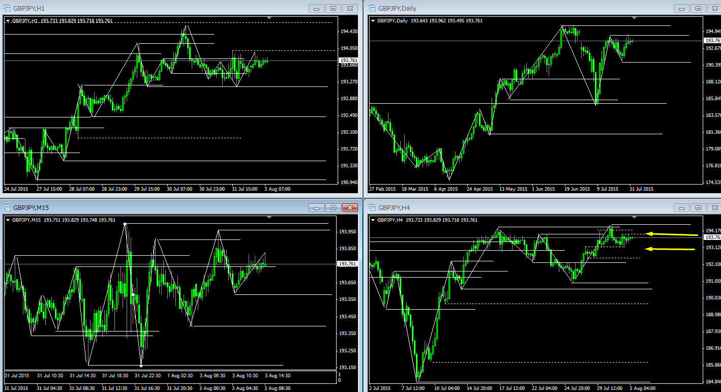 チャートをざっと確認すると、下図、GBP/JPYは黄色のライン抜けから参戦が出来そうです。
