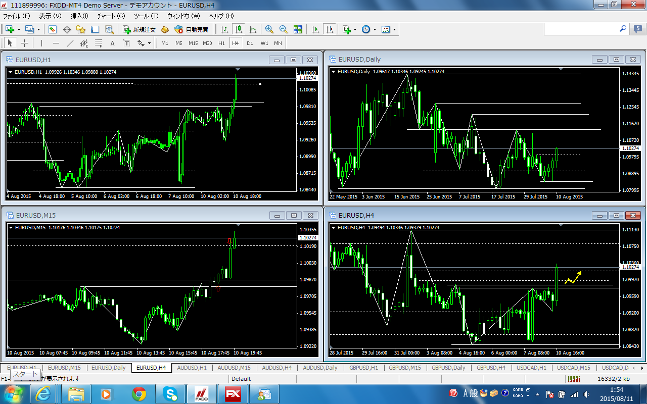昨日は一日中外出していたのでノートレですが、コンサル生から「EUR/USDをとったよー」との連絡が来たので、お見せ致します。