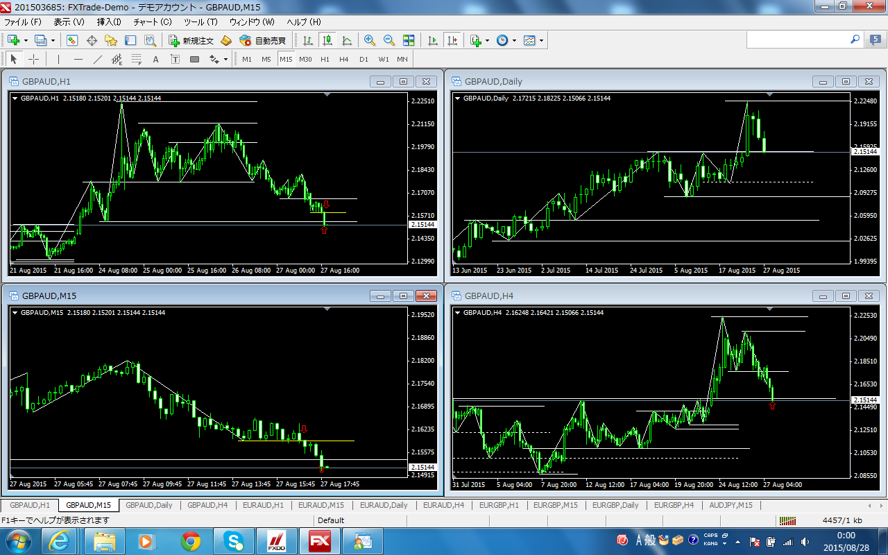 因みに、昨日のエグジットポイントは、日足重要抵抗部分です。理想的にはもう一段下まで持ちたかったのですが、大型指標が目の前だったので、とりあえず手仕舞いしました^^;)