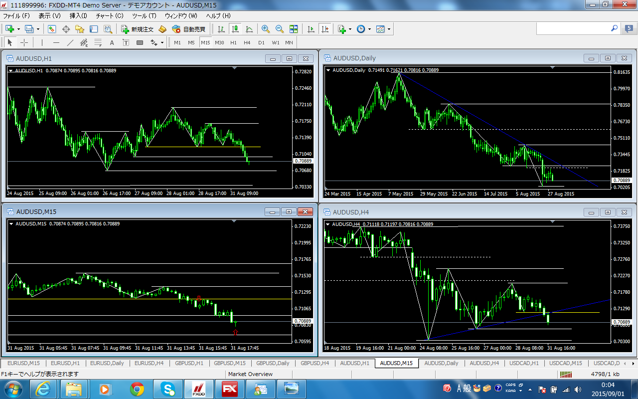 因みに、生徒さんから頂いた昨日のトレードチャートは下図。AUD/USD+24.6pips!