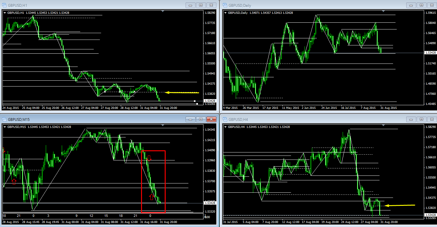 上記2つのチャート(GBP/USDとAUD/USD)を比べて貰うと分かると思うのですが、違う通貨ペアーでもほぼ同じ波形でほぼ同じようなエントリーポイントです。