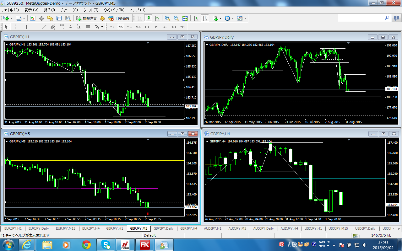 が、相変わらず、生徒さんは淡々と利益を確定していて、昨日はGBP/JPYで+33.4pipsという連絡を頂きました^^