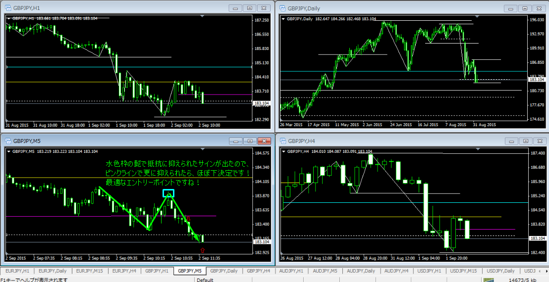 因みに、エントリー根拠は下図のコメントですね。(*生徒さんのチャートを添削したものです)