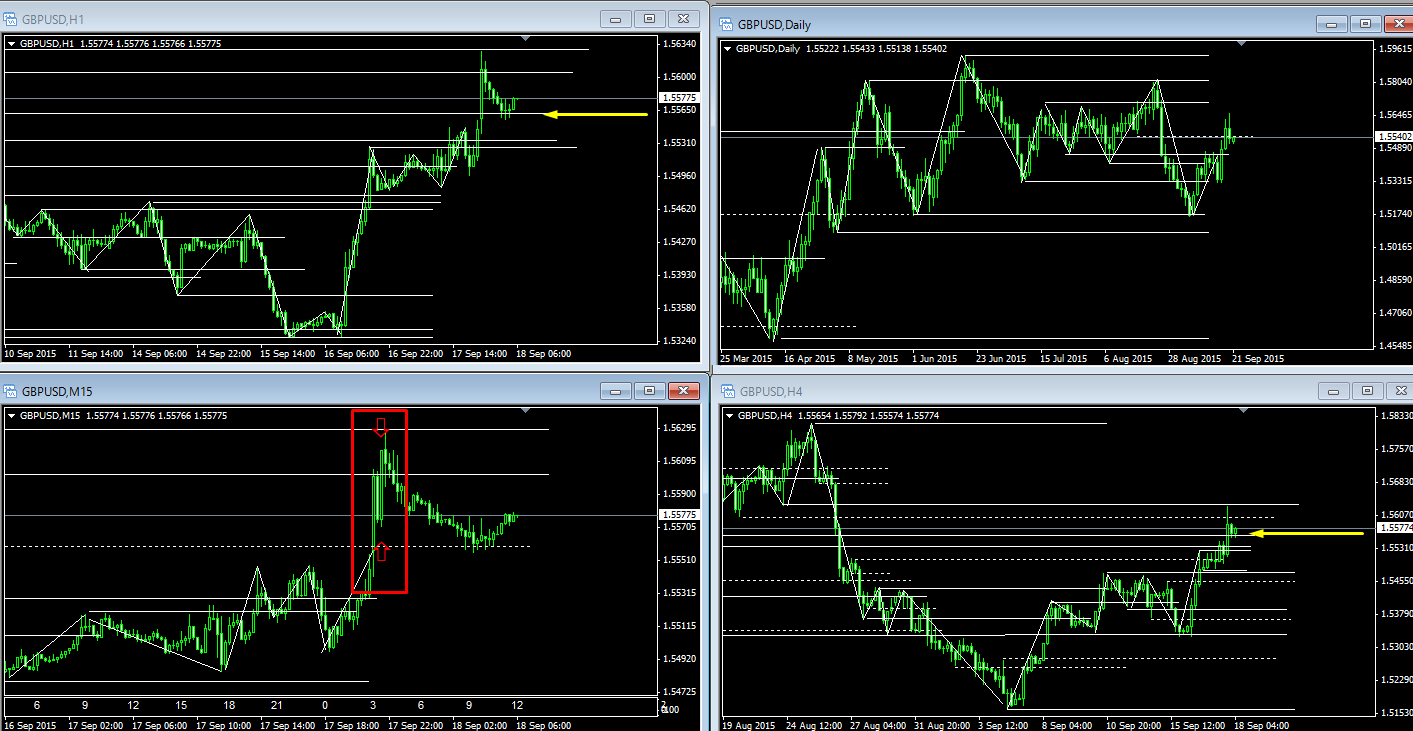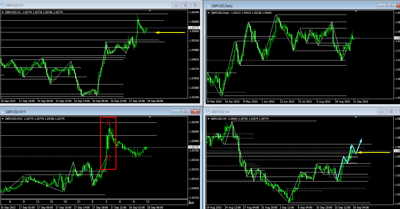 幸運にも、結果発表後に狙っていた方向に流れが出たので、下図、GBP/USDで参戦です。(結果は据え置きですが。。。)