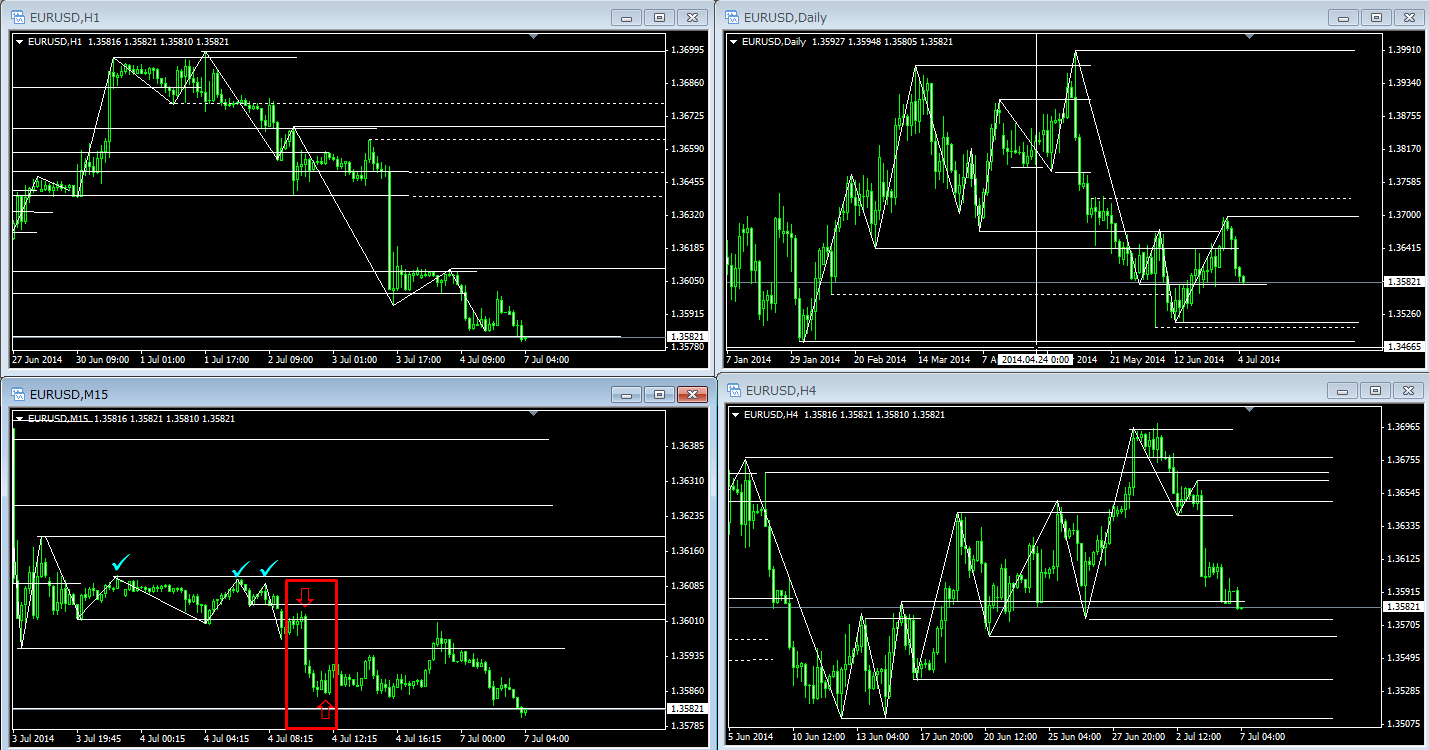 さて、本日ですが、4時間足以上はまだ上昇なので、全戻しも視野に入れなければいけません。