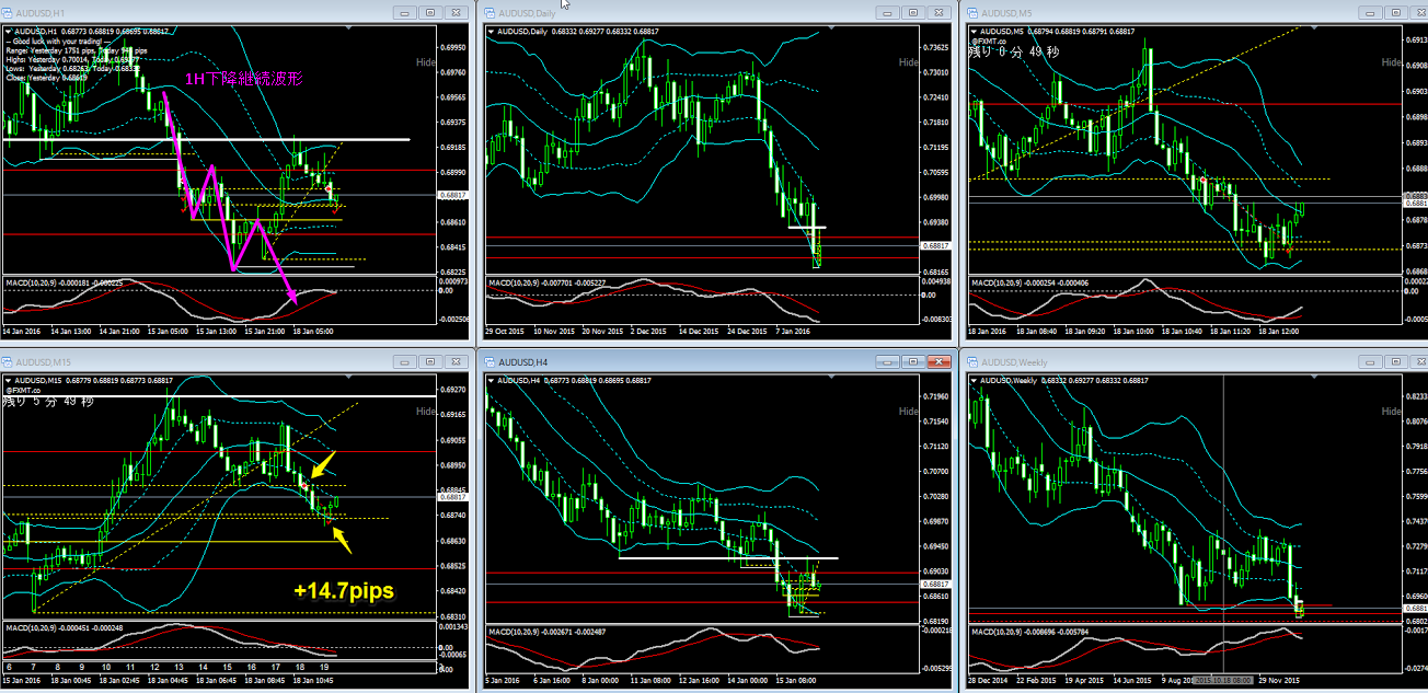 しかし、下図のピンクラインのように、レジスタンスを上抜けして、4Hレジスタンス付近まで大きく波が逆行してしまった場合は、D1→4H≠1Hのように、4Hまではまだ下降の流れが継続しているが、1Hは下降の流れが継続しているか不明だからです。(青枠部分)