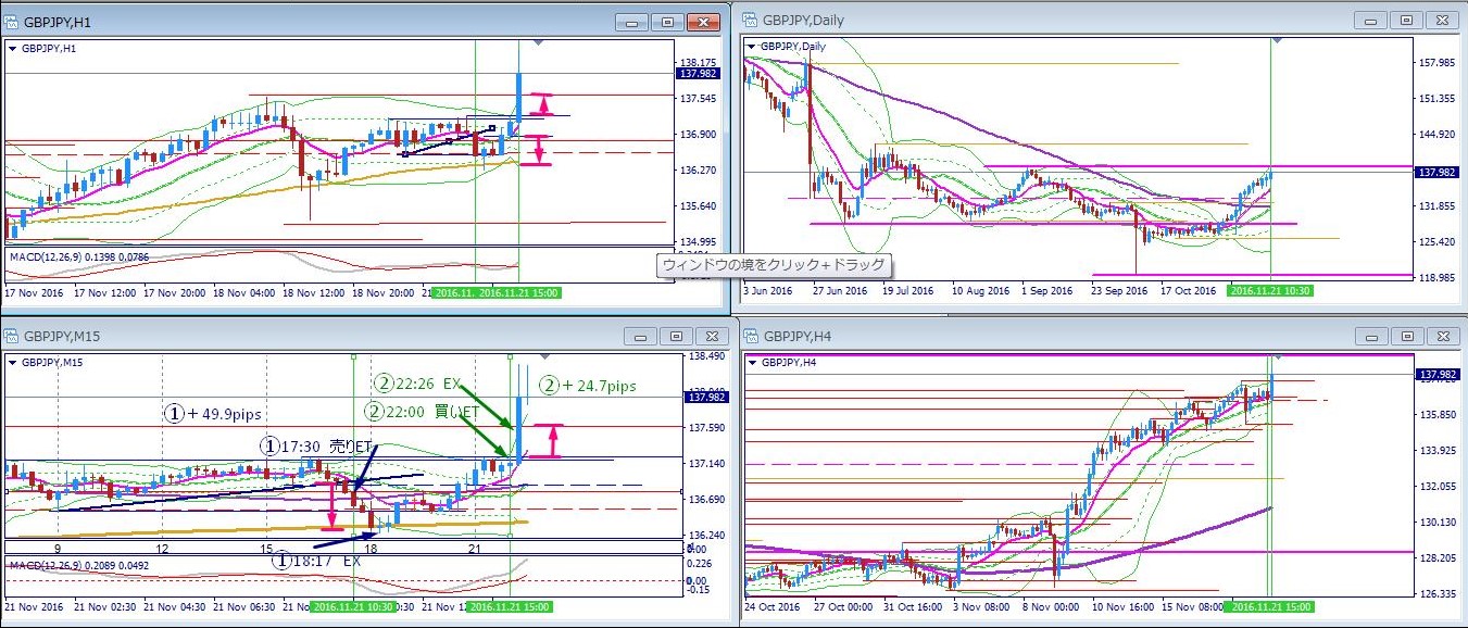 さて、昨日のポンド系で取った生徒さん(というか、トレードの学校の凄腕先生たちです^^)のチャートは以下になります。流石です!