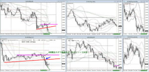 言い換えると、4時間足のダウ継続点で、下位足が「もう上に行きません!」と言っているところを見つければ、トレンド継続の初動が取れるということです。(*初動なので、大抵は、ダウが作られる前になります。)