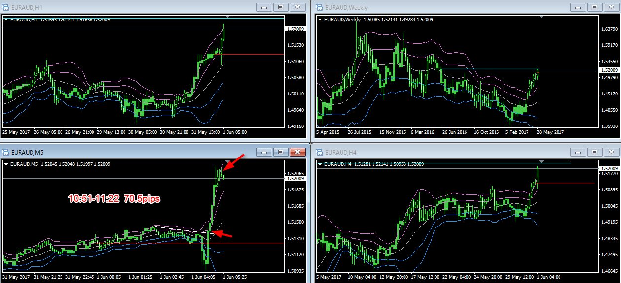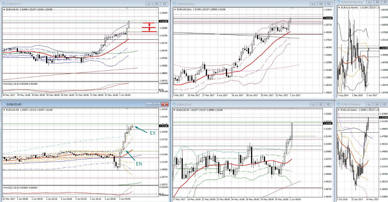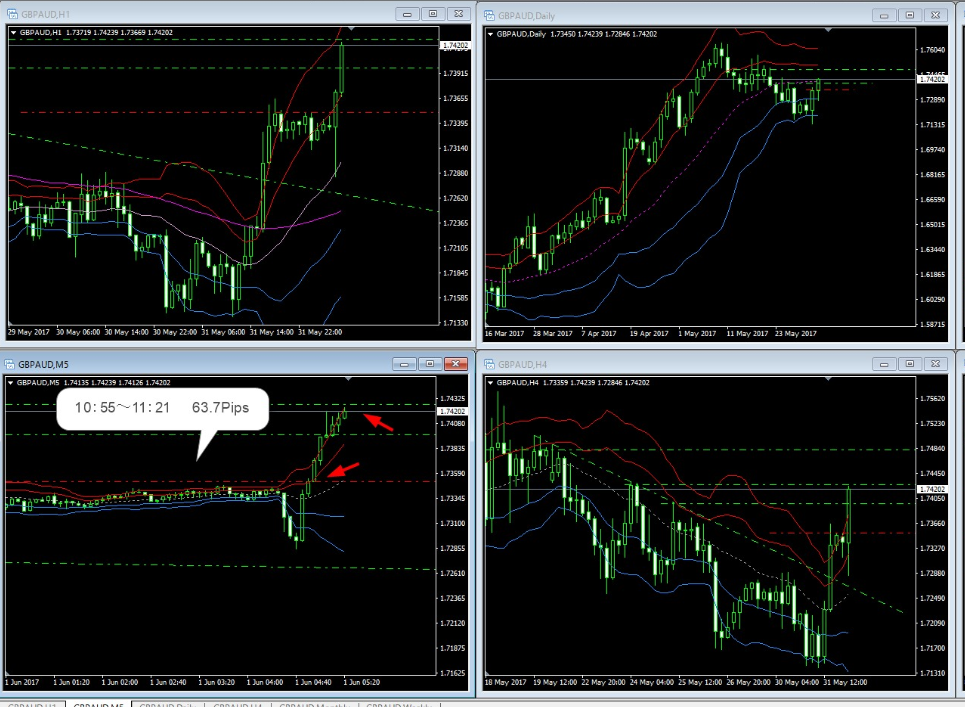 通貨ペアーは違えども、ほぼ同じ所でトレードしているところに注目です!