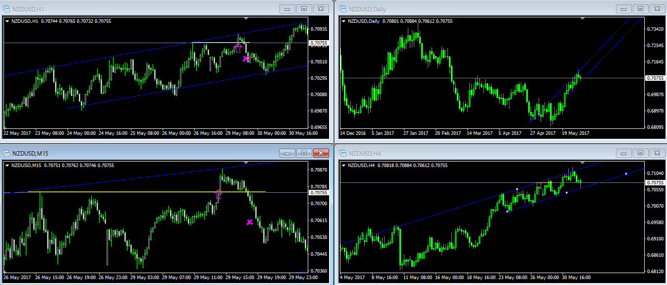 こういう環境での、チャネルライン上限付近の水平線のブレークは、直ぐに、大きな流れに戻されてしまうので、高値掴みをさせられることが非常に高いです。