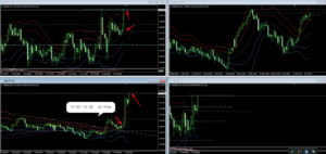 このようなイレギュラー相場の時には、トレードをしない(or 様子見する)、ことが一番安全ですが、どうしてもやりたい方は、ビックイベントの前後で、テクニカル的にサインが出たらトレードしましょう!