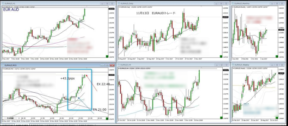 逆に、週足レベルで勝てる環境が出てない通貨ペアーは、週足一本分の中で、日足の勝てる環境を見つけてトレードすることになるので、難易度は少し高くなります。