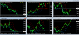 という事は、例え4時間足でトレンドが出そうでも、日足が所詮レンジのため、日足の節目節目でブチブチと4Hの流れが遮断されます。