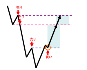 また、道中、1H以下の抵抗は全て無視できるので、1Hレベルの深い押し目が入ったとしても、それはノイズとして無視できます。