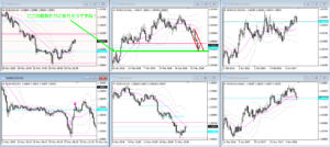 この一定のリズムをつけて下落している波の下限は案外馬鹿に出来ないので、環境分析に取り入れると、精度が上がるようになります。