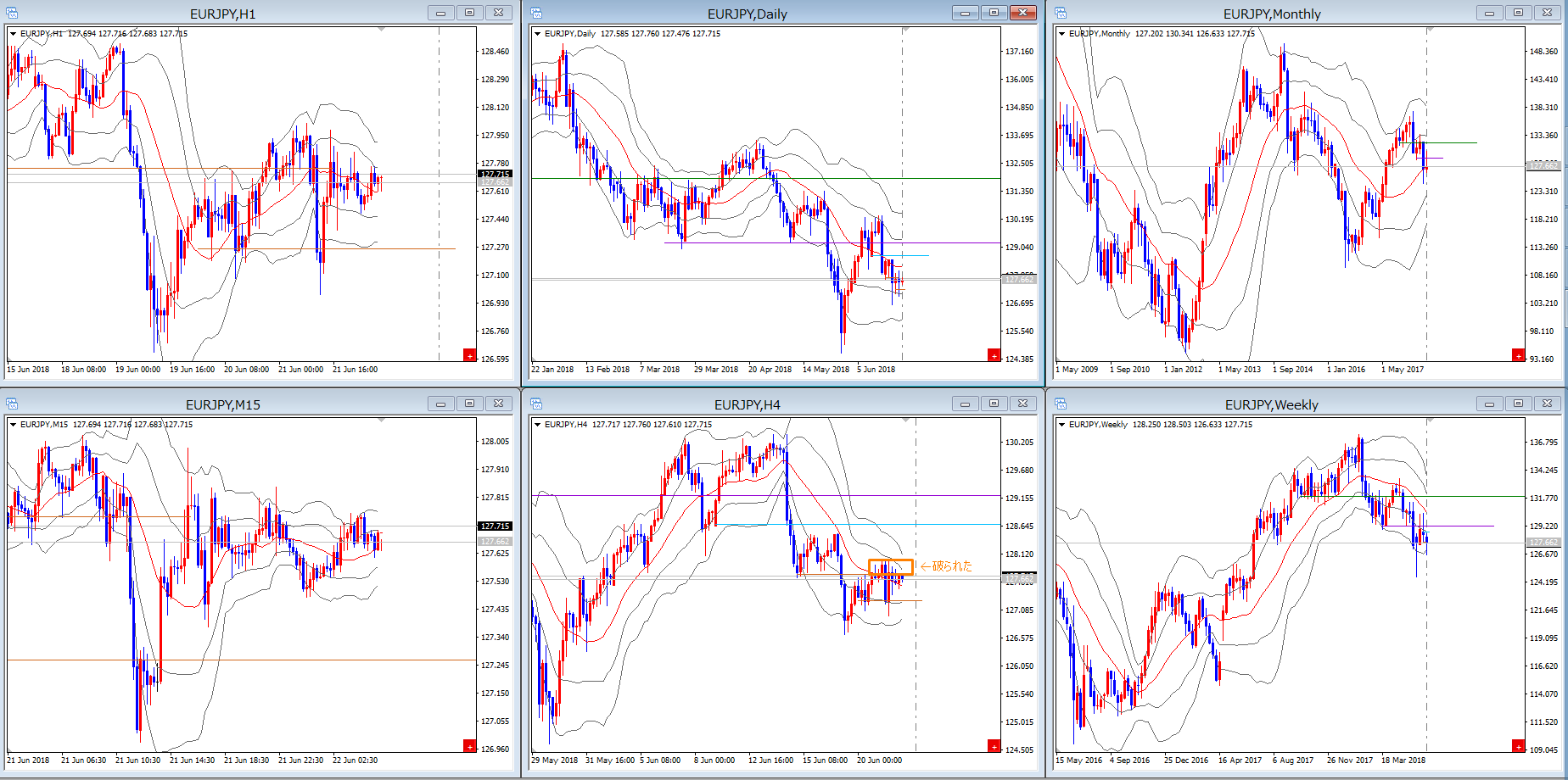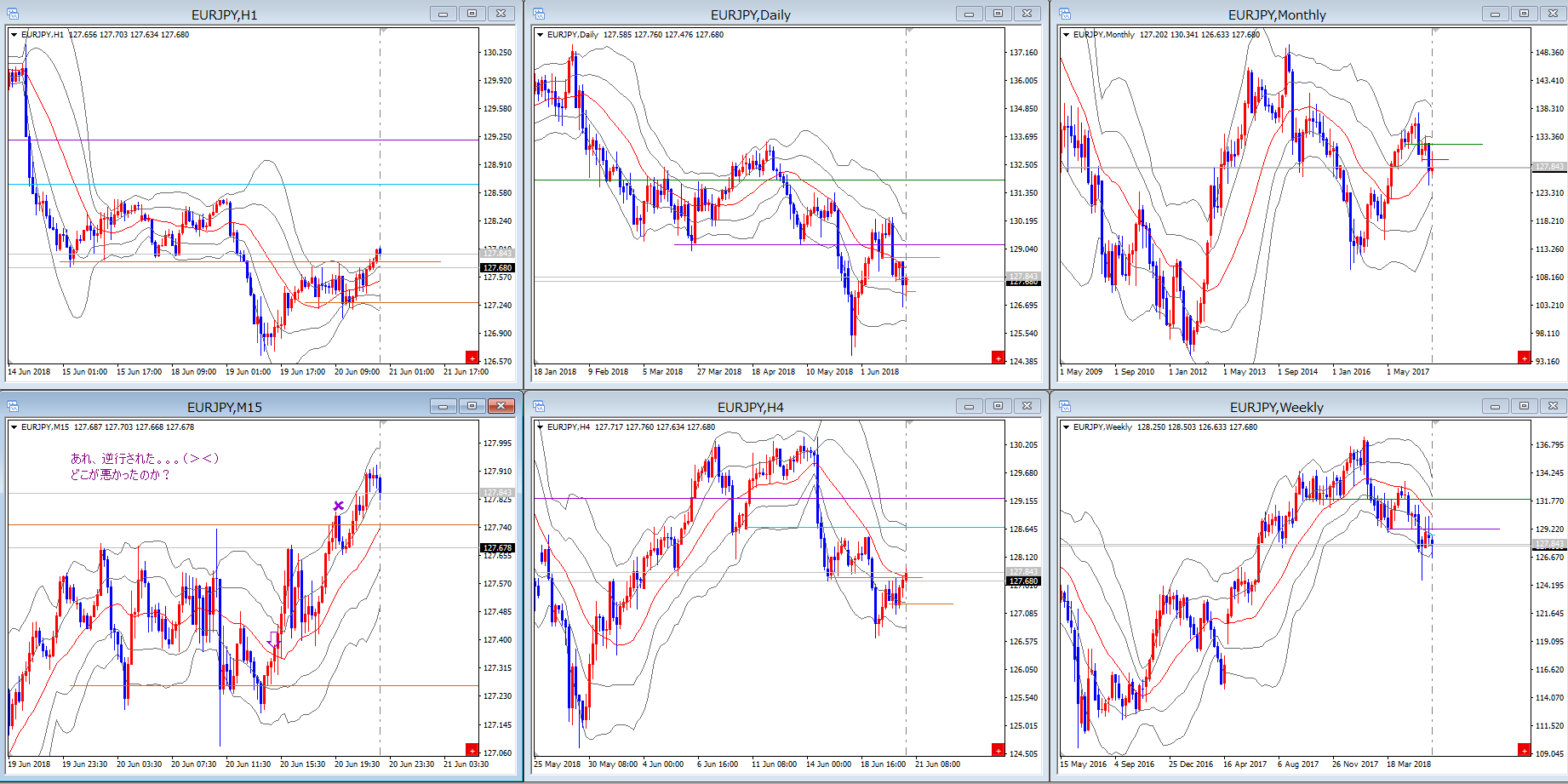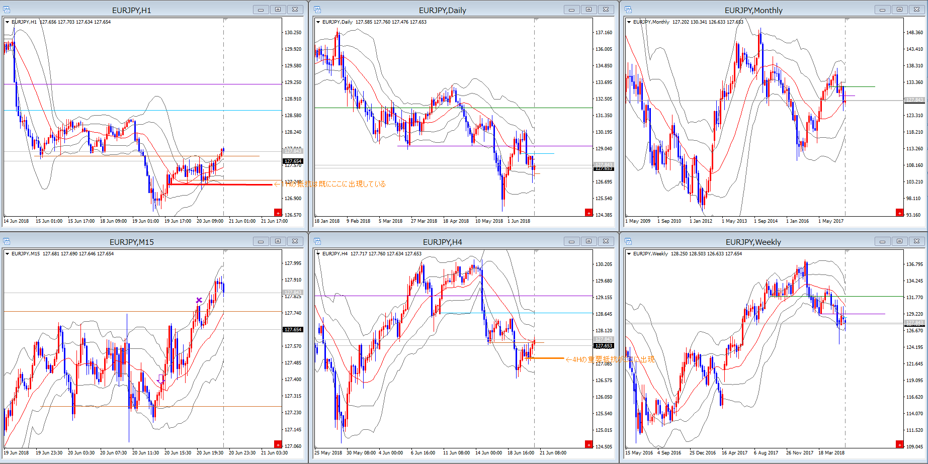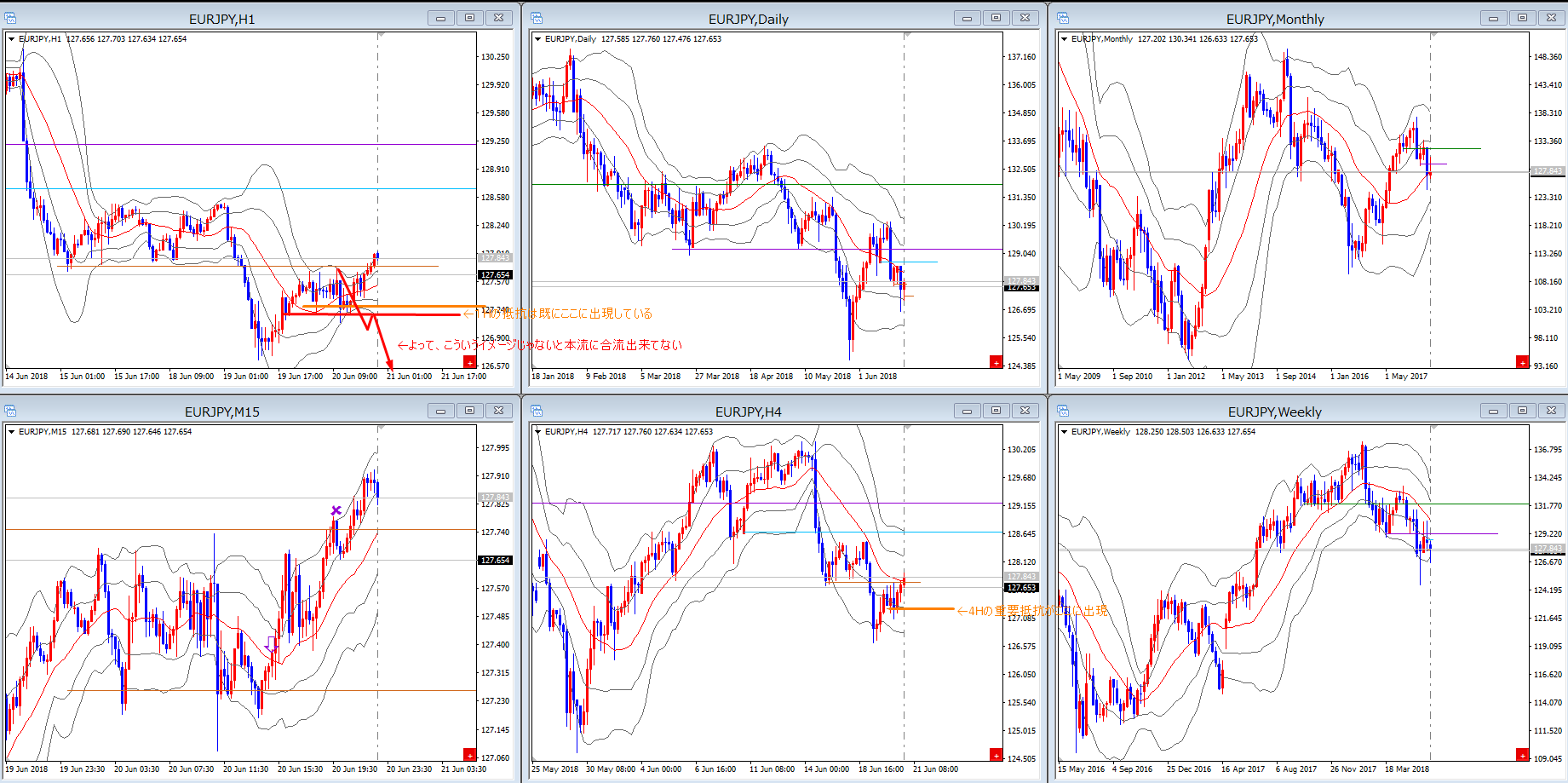 抵抗の描き方を理解していないのか、タイムフレームの順番の大切さを理解していないのか、同じような波形で同じように負ける例がこの頃見受けられます。