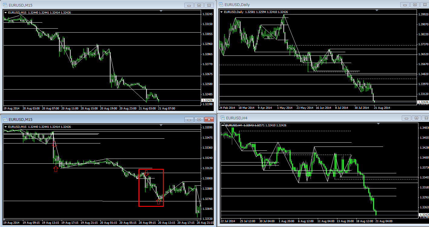 英国系の指標だったので、英国ではメジャーなEUR/GBPとGBP/USDの通貨ペアで、EURの通貨の流れを事前に監視していたので、実は下に行くことは自信があったのですが。。。