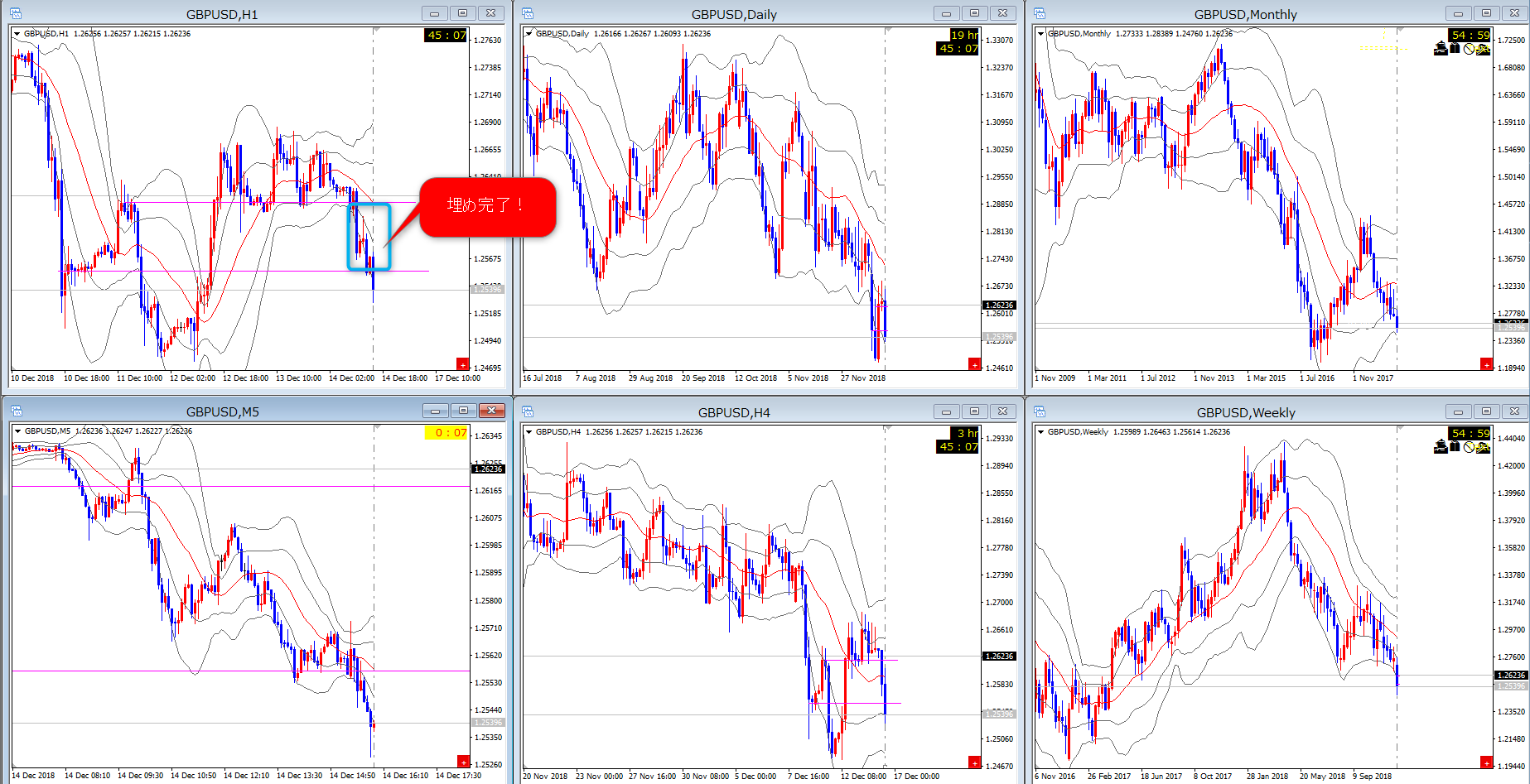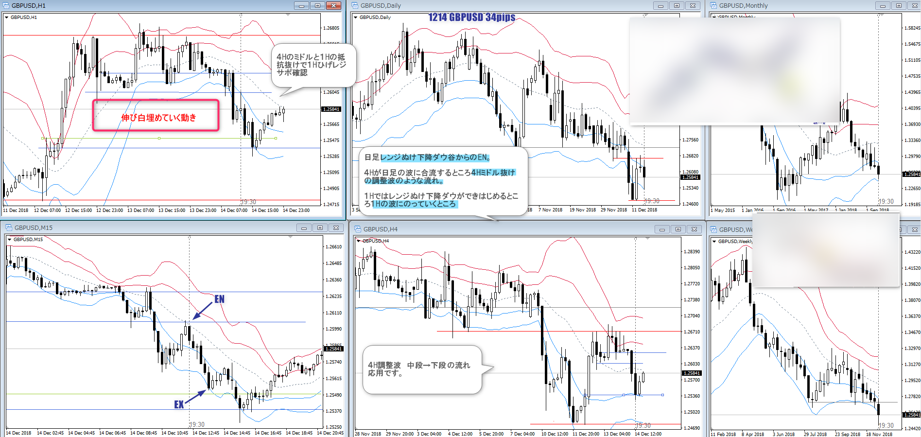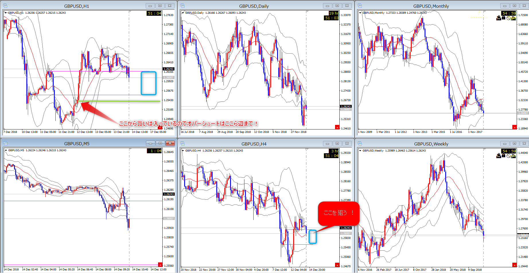 さて、先日のGBP/USDですが、想定通りの波がでました。(*下図の左下は5Mです)